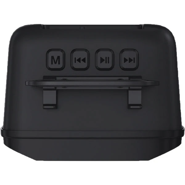 بالای اسپیکر 4 دکمه قرار دارد که یکی برای پلی کردن موسیقی و دوتای دیگر برای جلو و عقب زدن آهنگ استفاده میشوند.