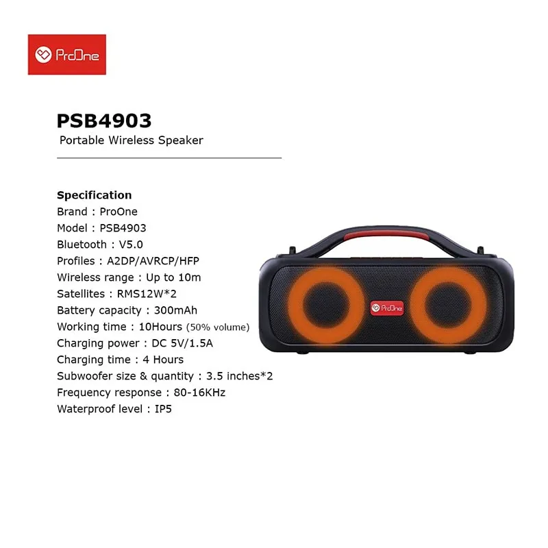 اسپیکر پرتابل PROONE مدل PSB4903 با 12 ماه گارانتی کاوان سرویس