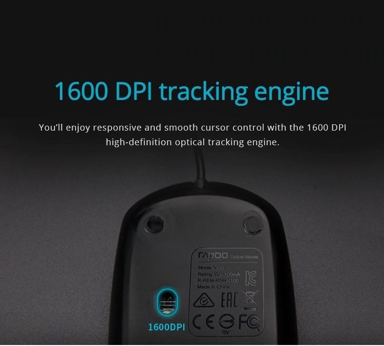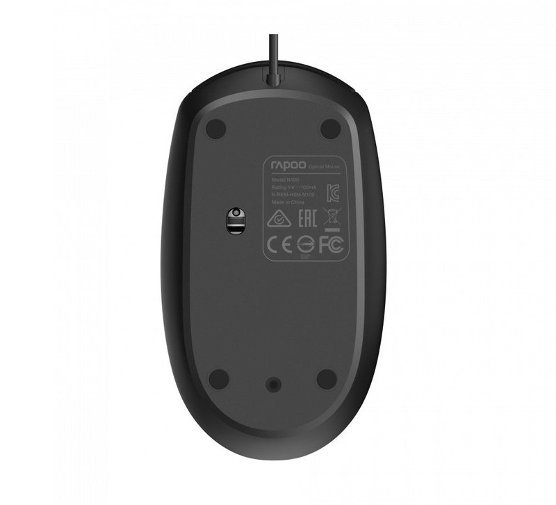 موس سیم دار RAPOO مدل 100 دارای 3 کلید فیزیکی و با دقت 1600 و پشتیبانی از تمامی ویندوز ها و دستگاه ها و کامپیوتر و لب تاپ