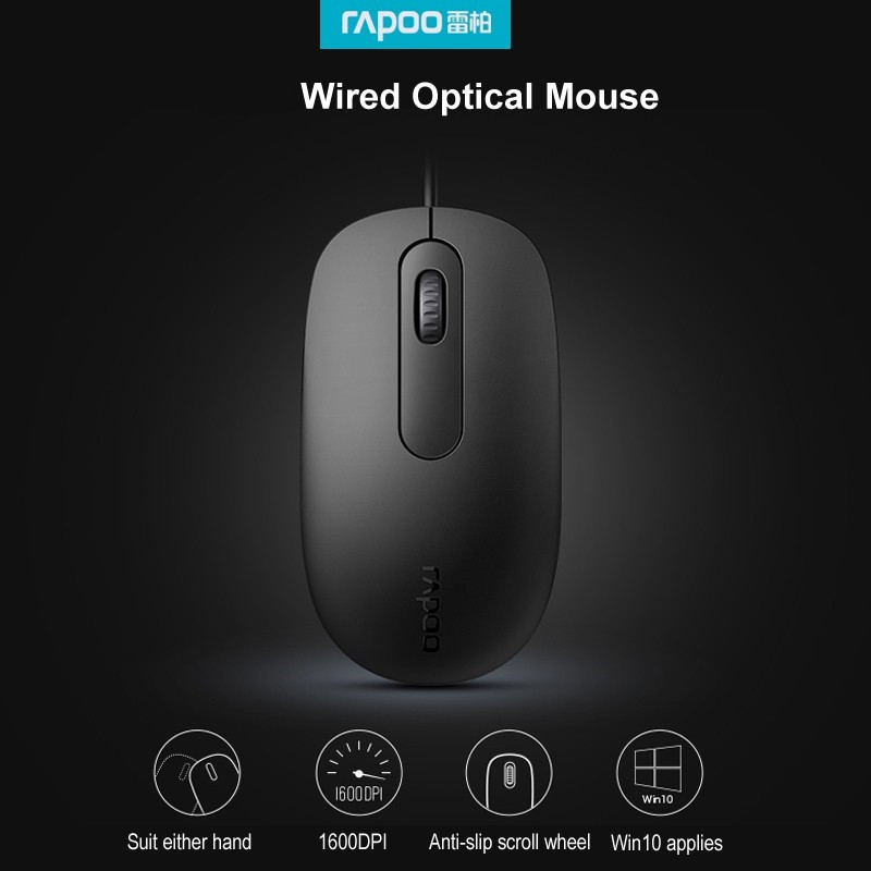 موس سیم دار RAPOO مدل 120 یک موس با دقت 1600 این موس روی ویندوز 10، ویندوز 8.1، ویندوز 8 و ویندوز 7 و XP و که دستگاه های کامپیوتر و لب تاپ را پشتیبانی میکند و می توان با هر دو دست از آن استفاده نمود