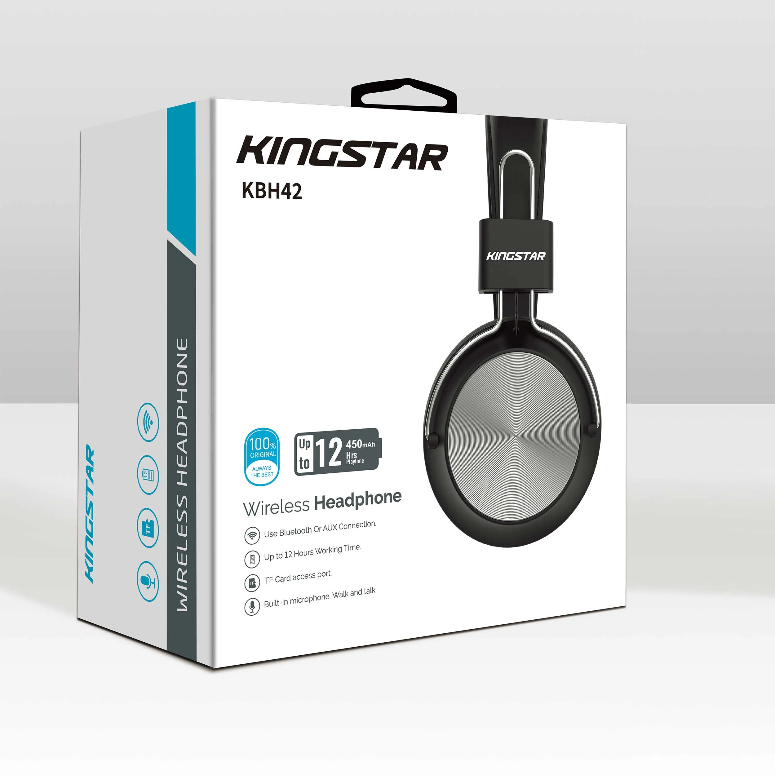 هنگام مواجه شدن با هدفون KBH42 از کمپانی بزرگ کینگ استار اولین چیزی که نظر همگان را جلب میکند طراحی و زیبایی این محصول است. با اینکه این کمپانی این محصول را در نگاه اول ساده طراحی کرده است اما این سادگی شکیلی را برای آن به ارمغان آورده است. این محصول از دسته هدستهای بی سیم و بلوتوثی است.اما این مورد باعث نشده است که کینگ استار در طراحی خود از پلیرهایی که قابلیت اتصال بلوتوث را ندارند غافل شود.