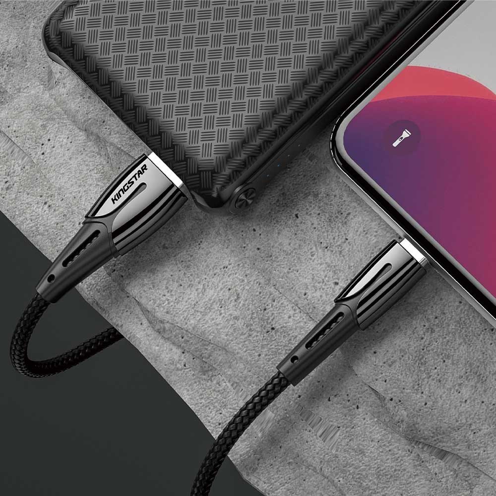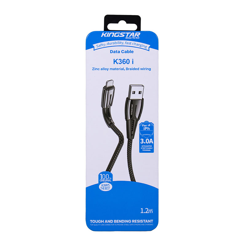 کابل لایتنینگ K360i کینگ استار با قابلیت شارژ سریع و انتقال دیتا با جنس کنفی برای گوشی و سایر لوازم جانبی که دارای پورت لایتنینگ نیز استفاده می شود و سرعت انتقال داده آن نیز 480MB/S میباشد.