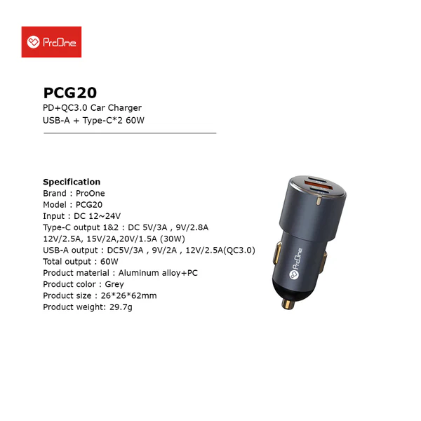 شارژر فندکی 60 وات PROONE مدل PCG20